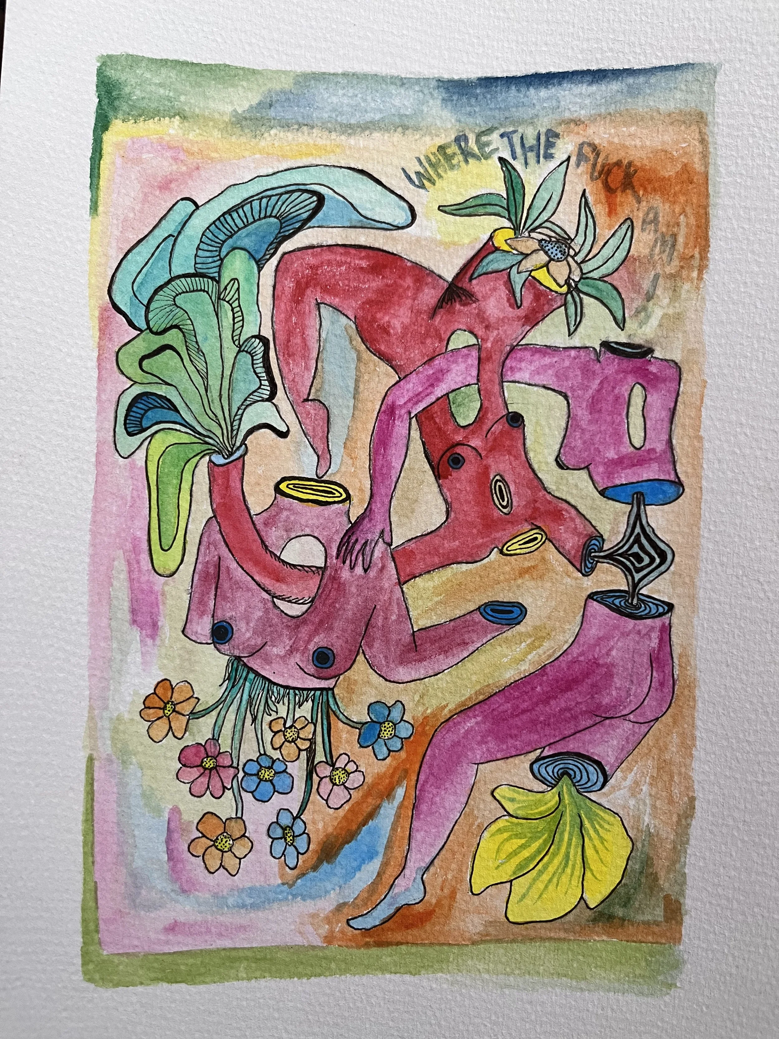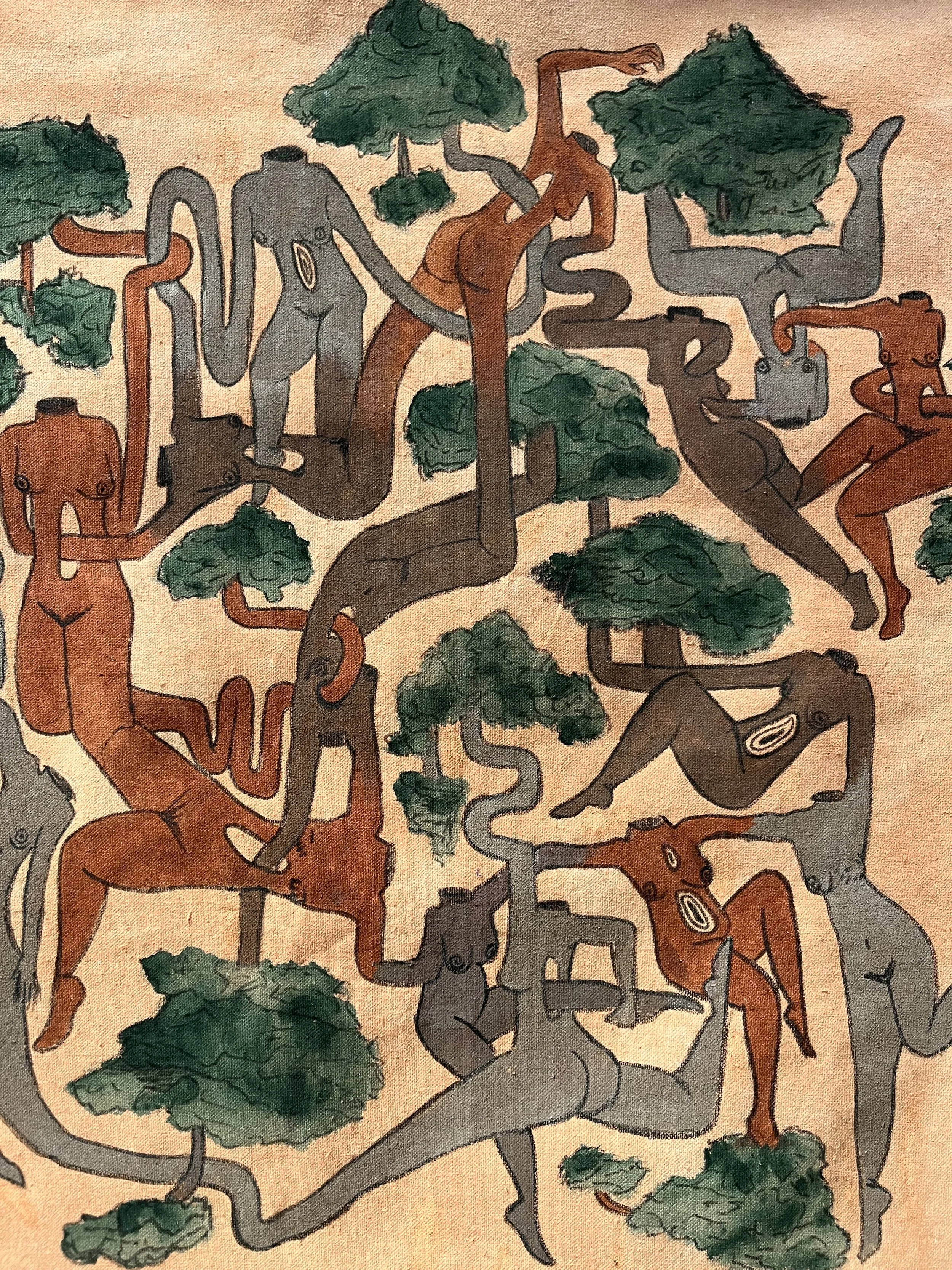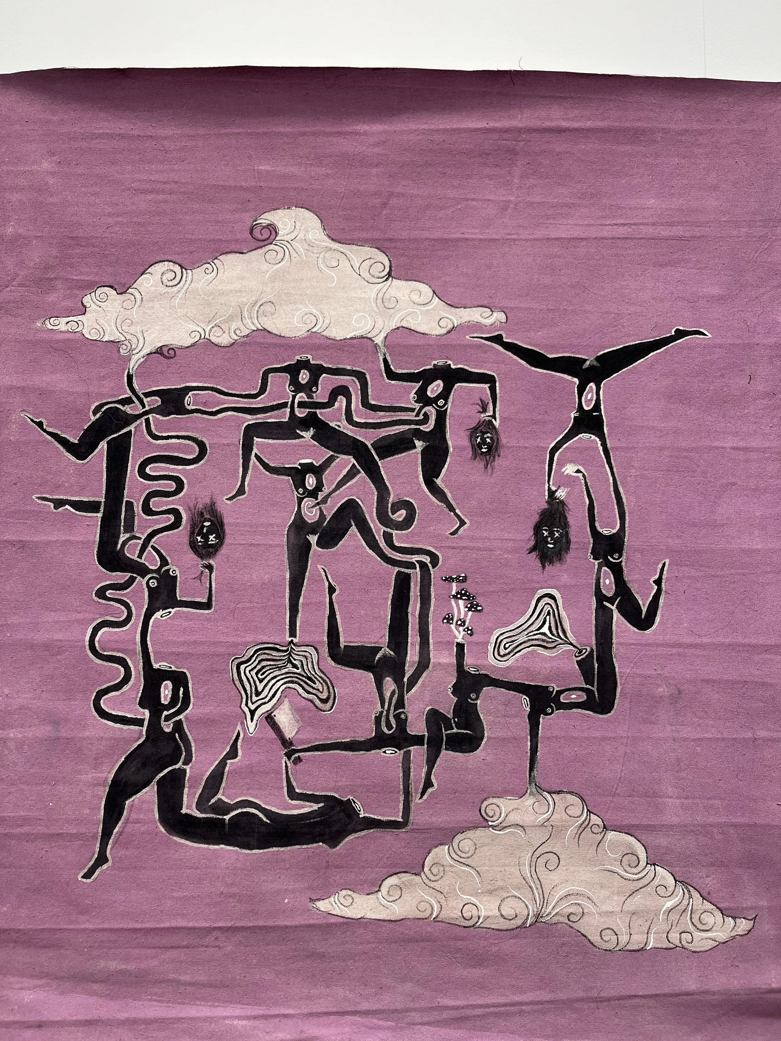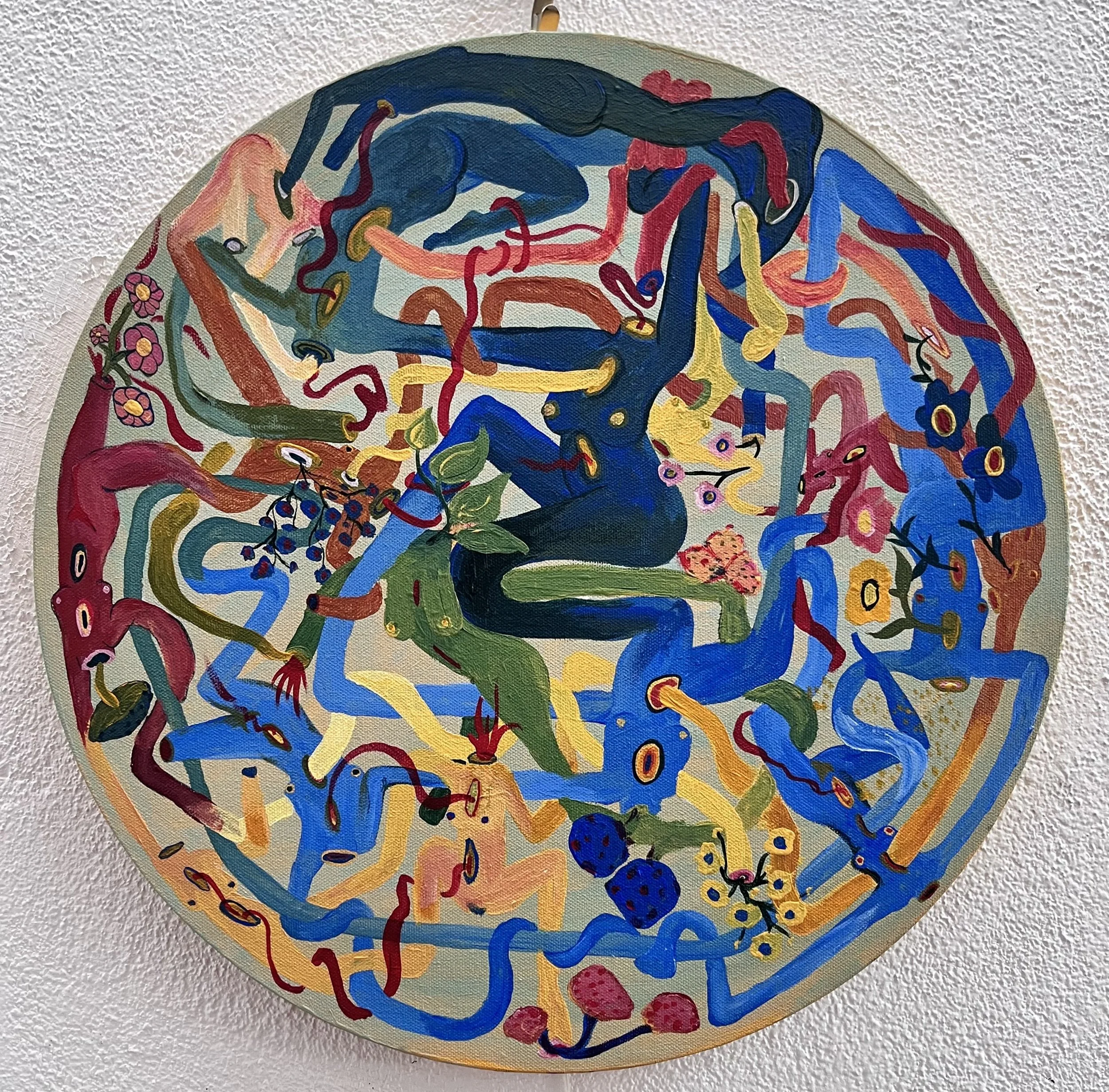 sasha britto laying in front of her piece, Karijini, Gut Feelings Exhibition
