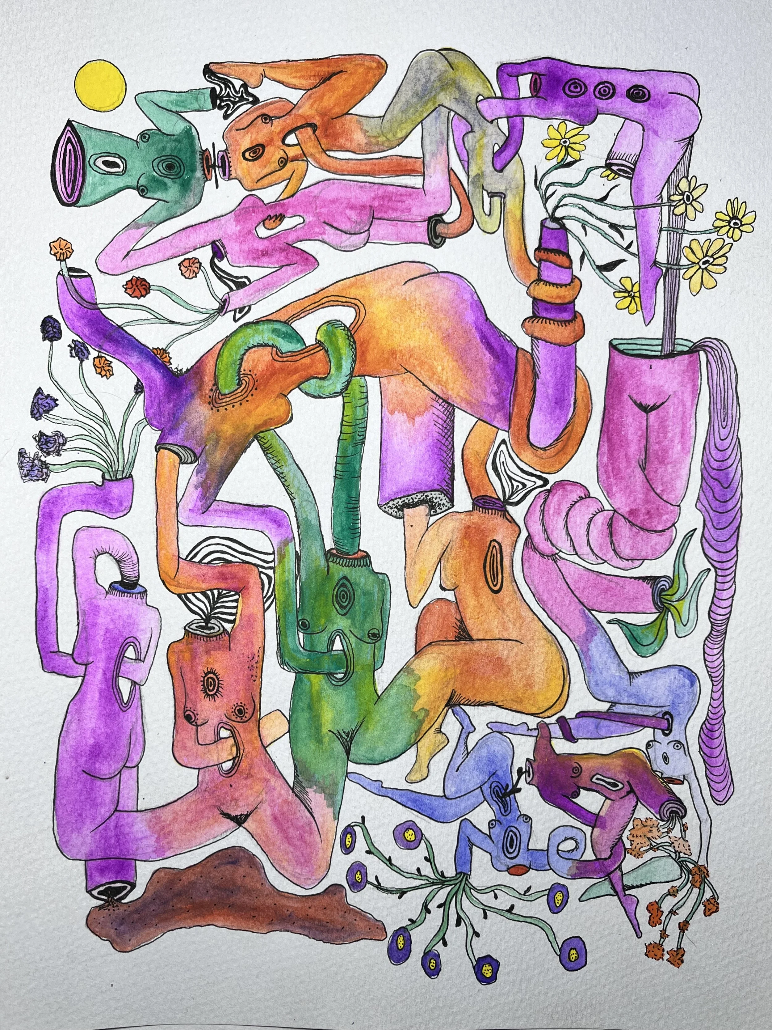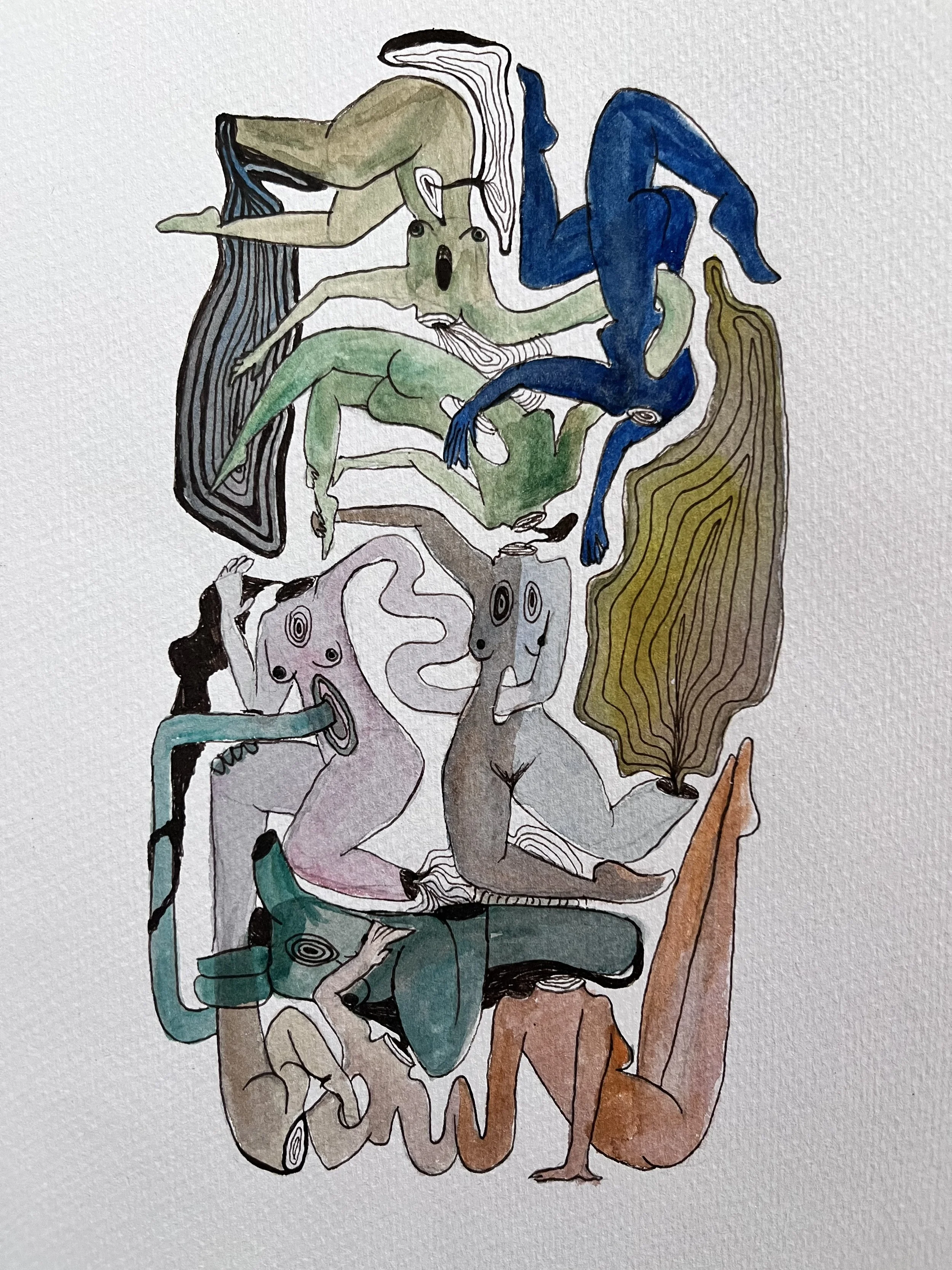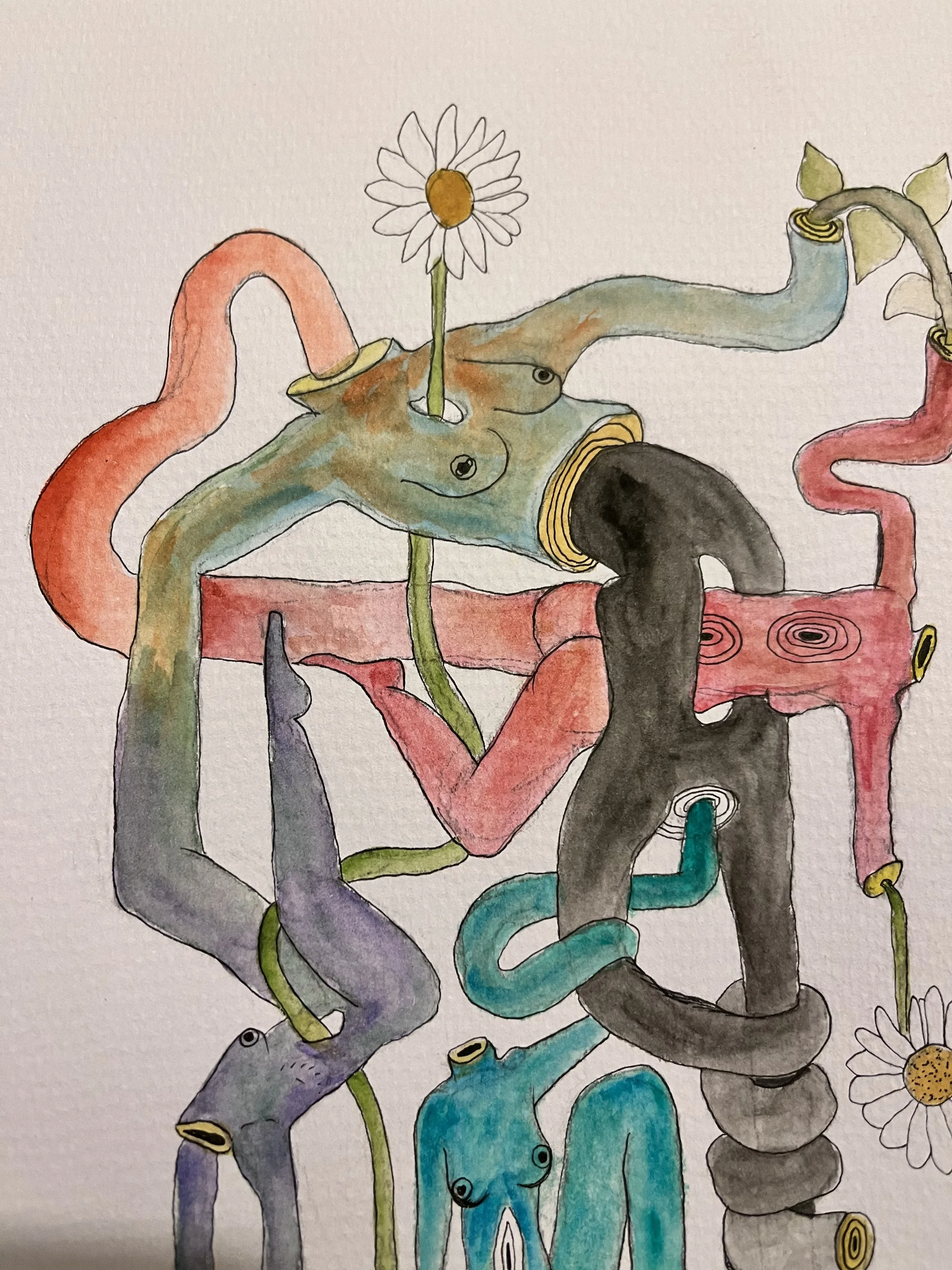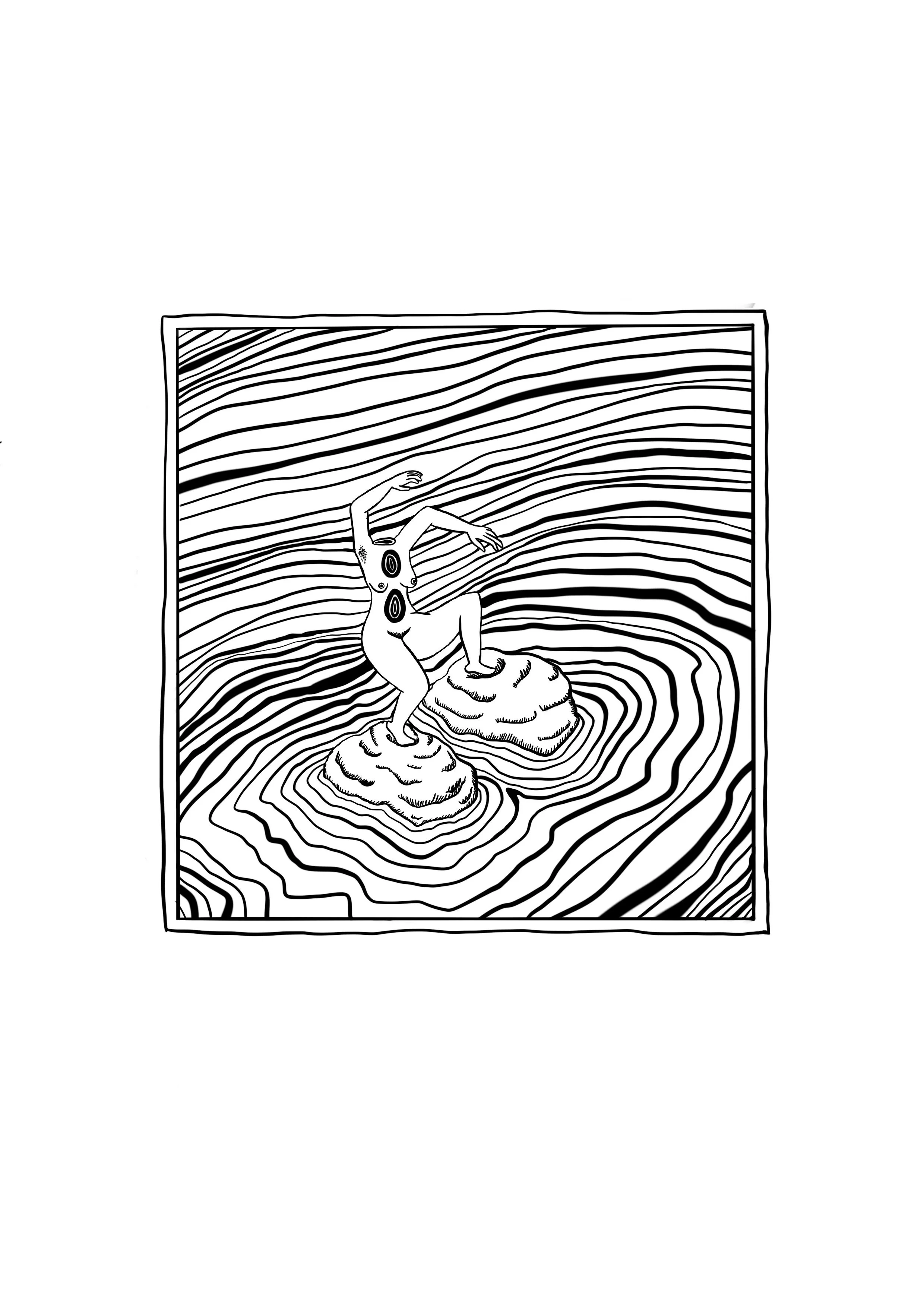 sasha britto laying in front of her piece, Karijini, Gut Feelings Exhibition